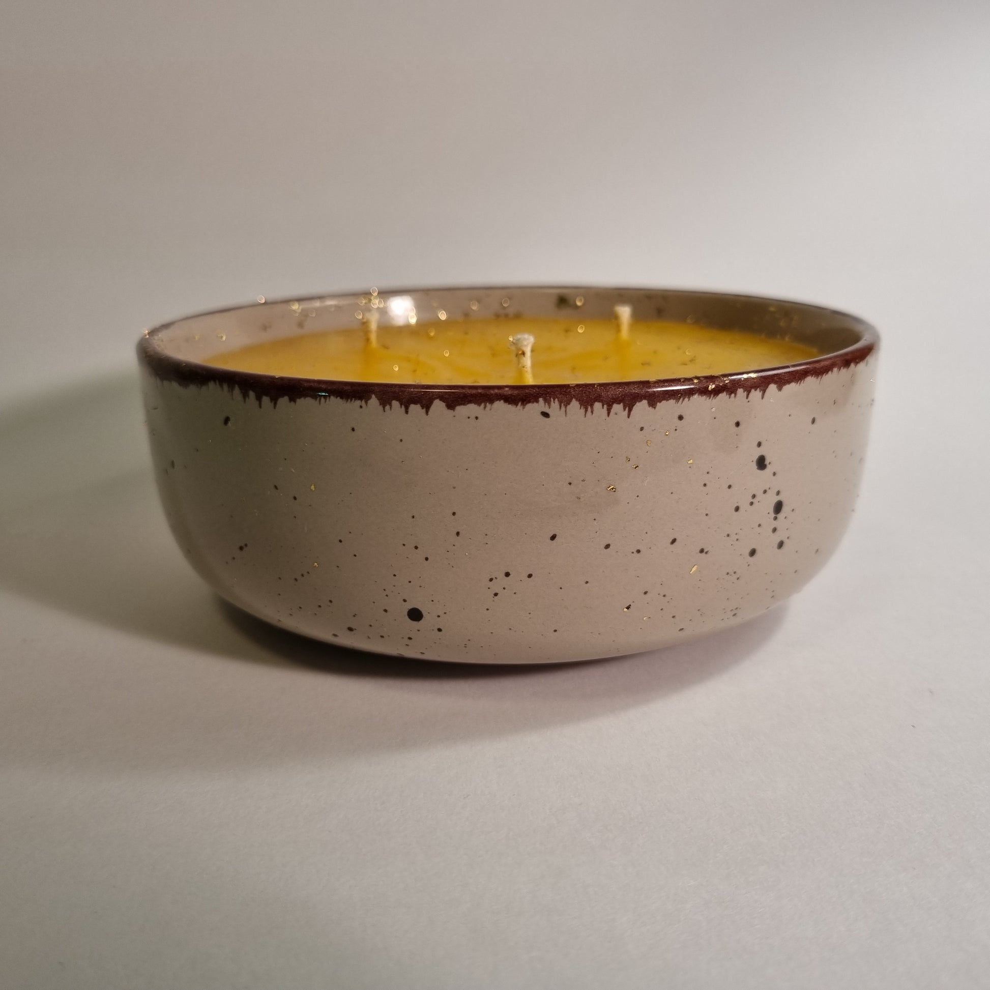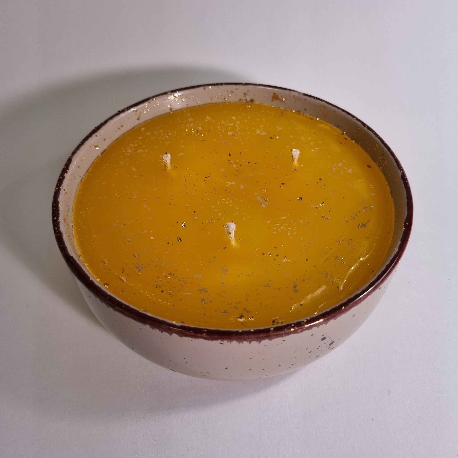 1022 Wachsfresser Keramikschale 18.5 cm Wachs gelb/transparent 3 Dochen 24 Kt. Garniert