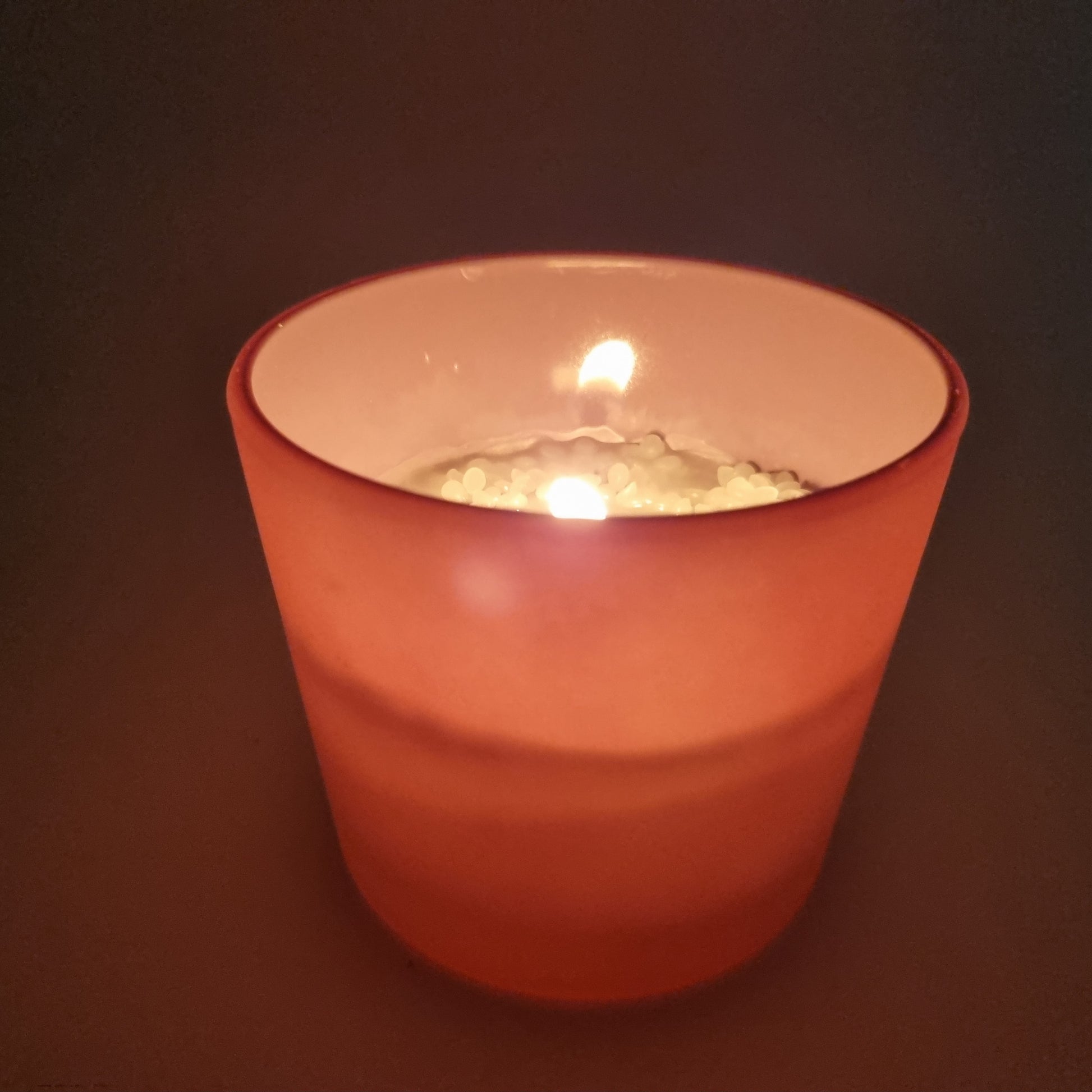 Breite oben 10 cm Höhe 9 cm Paraffin Docht 1 Wachs lindengrün, Glas nicht ganz voll